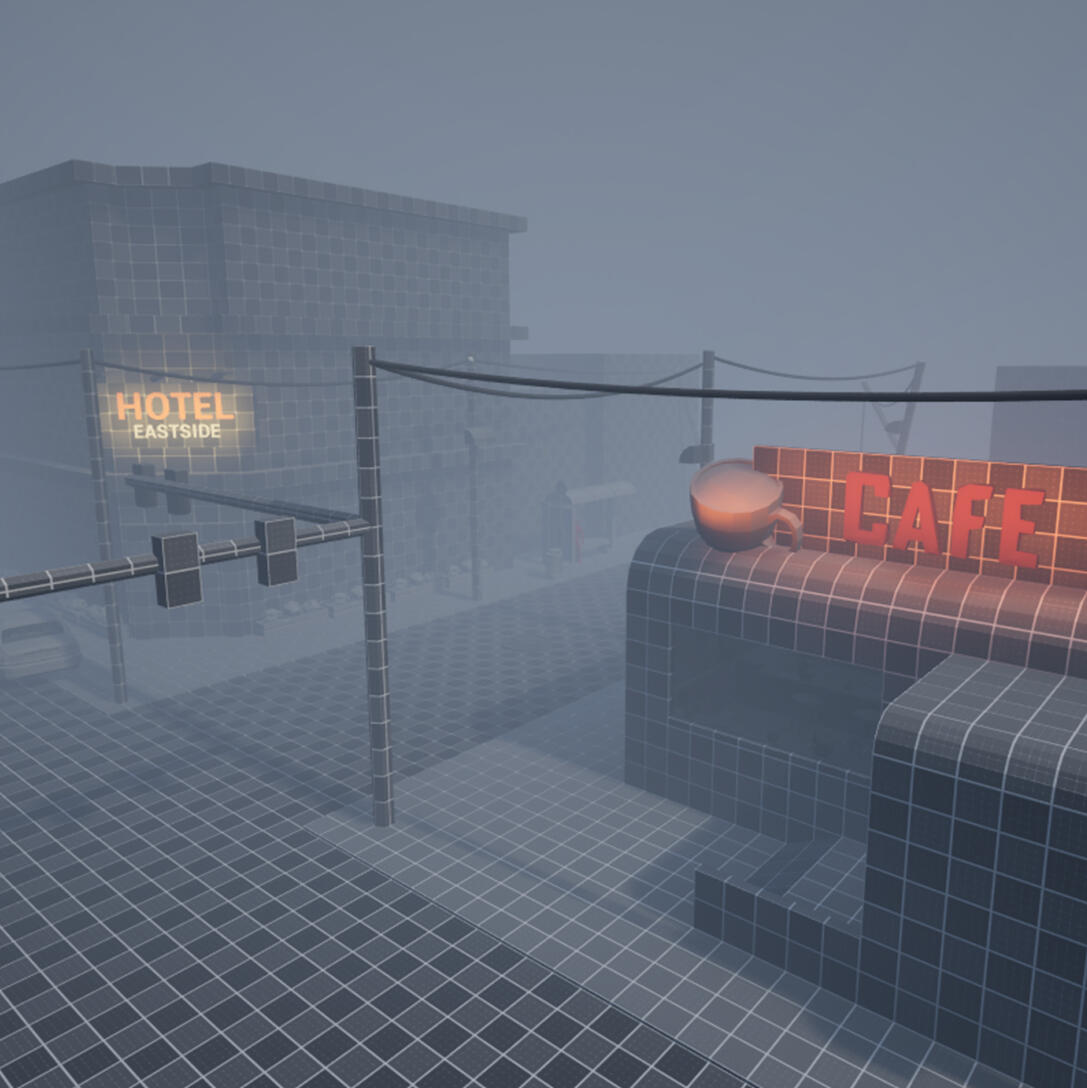 The level was created shortly after the release of Silent Hill 2 Remake, which inspired me to try to capture a similar atmosphere. I tried to mark the start of the level as a logical continuation of the previous stage. The player must reach the Eastside Hotel, but it’s locked - they first need to find a key to the door. There are enemies placed throughout the level to create a sense of unease and build tension. Lighting plays a major role here, as does the thick fog covering the streets of a small American town.